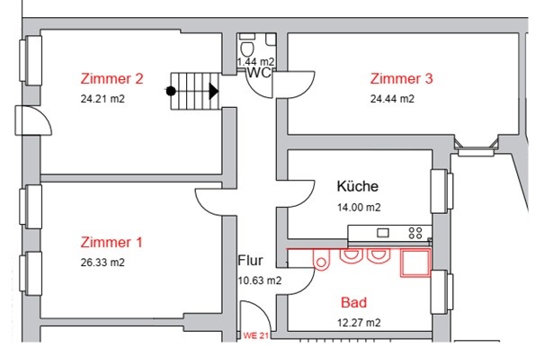 Zimmer:                                            3. + 1 im Souterrain