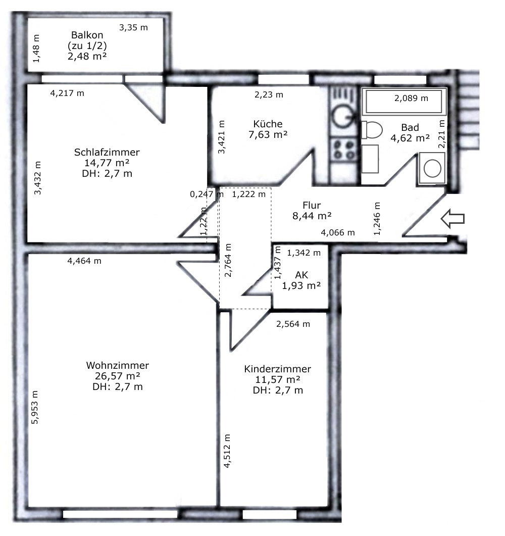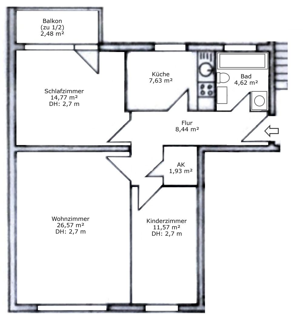 Deckenhöhe ca.: 2,7 m