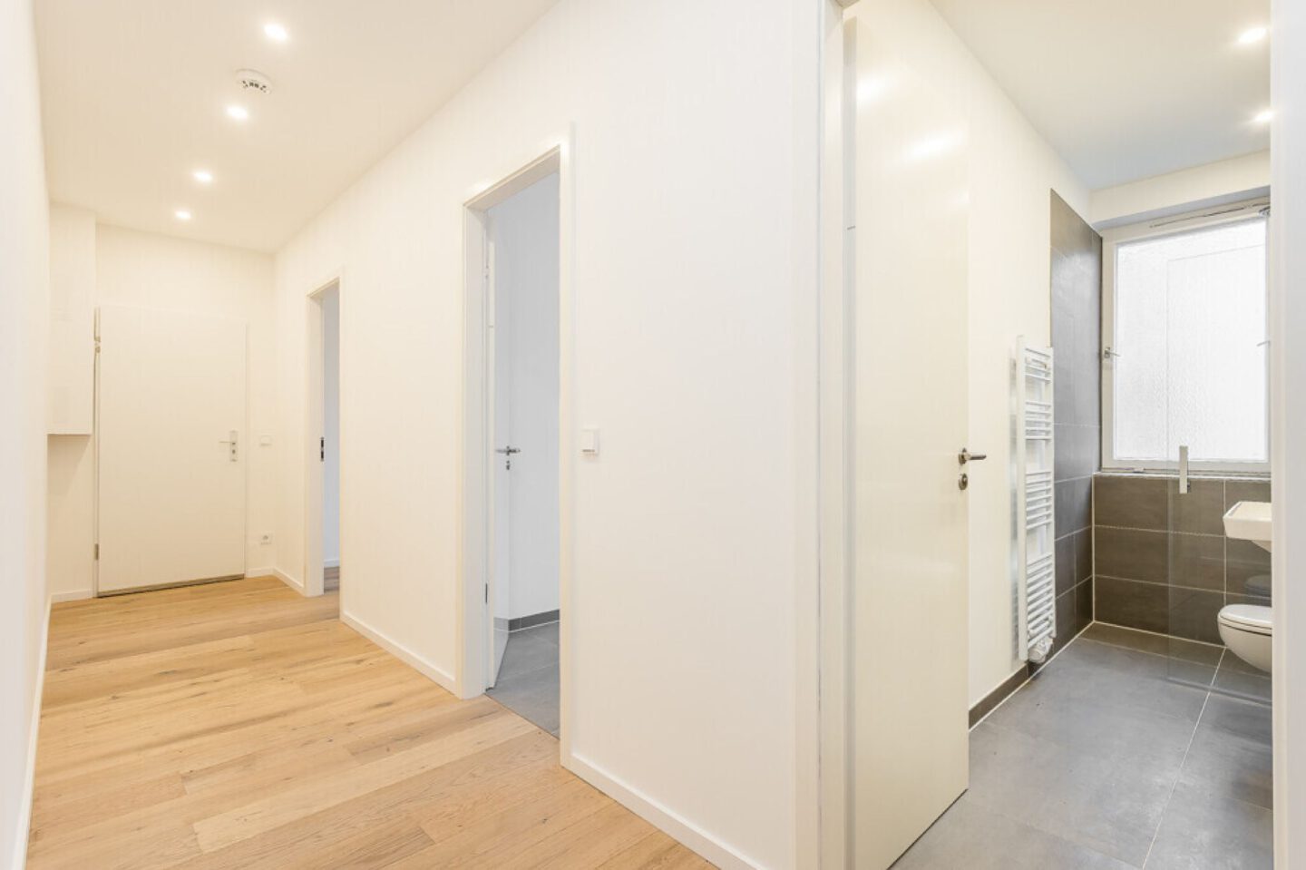 Zunächst empfängt Sie das modern geflieste Tageslichtbad mit bodengleicher Dusche und hochwertigen Markenarmaturen – ein stilvoller Raum, der Komfort und Funktionalität vereint. Die großzügige bietet ausreichend Platz für kulinarische Kreativität und gemütliche Stunden mit Familie oder Freunden. Im Anschluss öffnen sich drei weitere Zimmer, darunter das lichtdurchflutete Wohnzimmer mit Ostausrichtung und Zugang zur großen Loggia, die zum Entspannen in der Abendsonne einlädt. Zwei weitere Zimmer lassen sich flexibel als Schlaf-, Arbeits-, Gäste- oder Kinderzimmer nutzen – ganz nach Ihren individuellen Bedürfnissen.