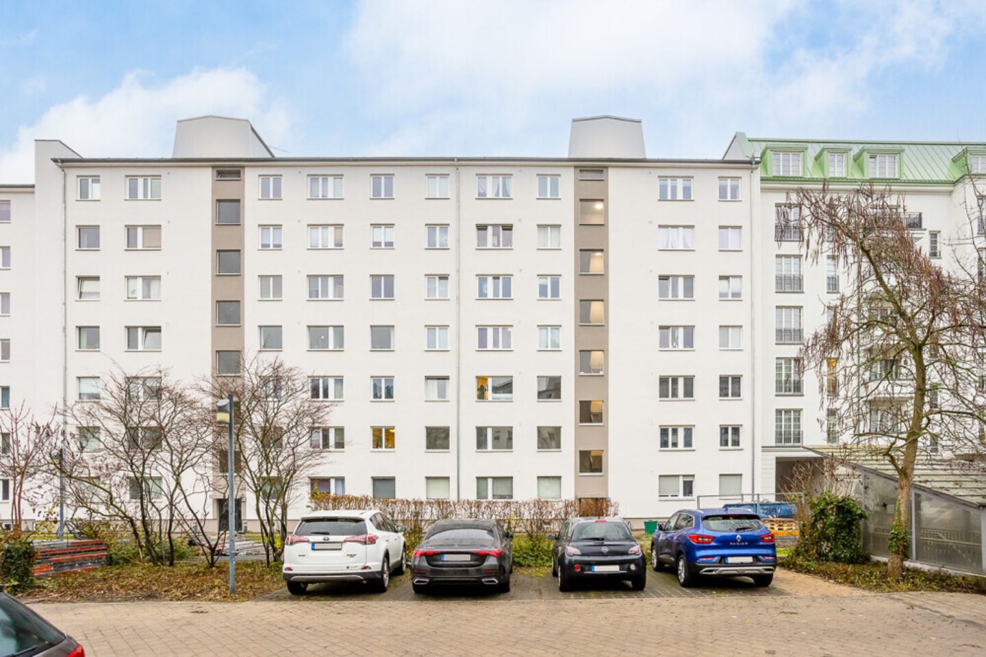 Das Wohnhaus präsentiert sich als moderne und gepflegte Wohnanlage mit insgesamt 88 Wohneinheiten, verteilt auf fünf Hauseingänge. Durch seine Größe und durchdachte Struktur bietet das Ensemble ein angenehmes Wohnklima sowie ein Gefühl von Weite und Privatsphäre. Vor Kurzem wurde das Gebäude umfassend saniert. Zu den Maßnahmen zählen unter anderem die Erneuerung der Fassade, die Modernisierung der Treppenhäuser inklusive neuer Aufzüge sowie die Neugestaltung des Hofbereichs.