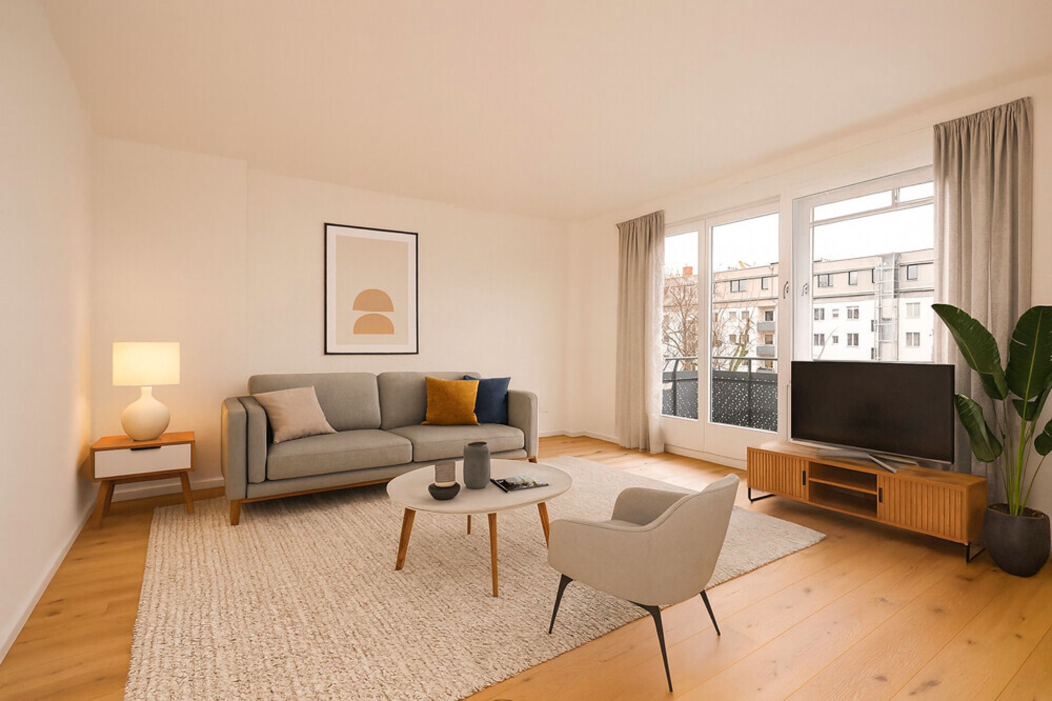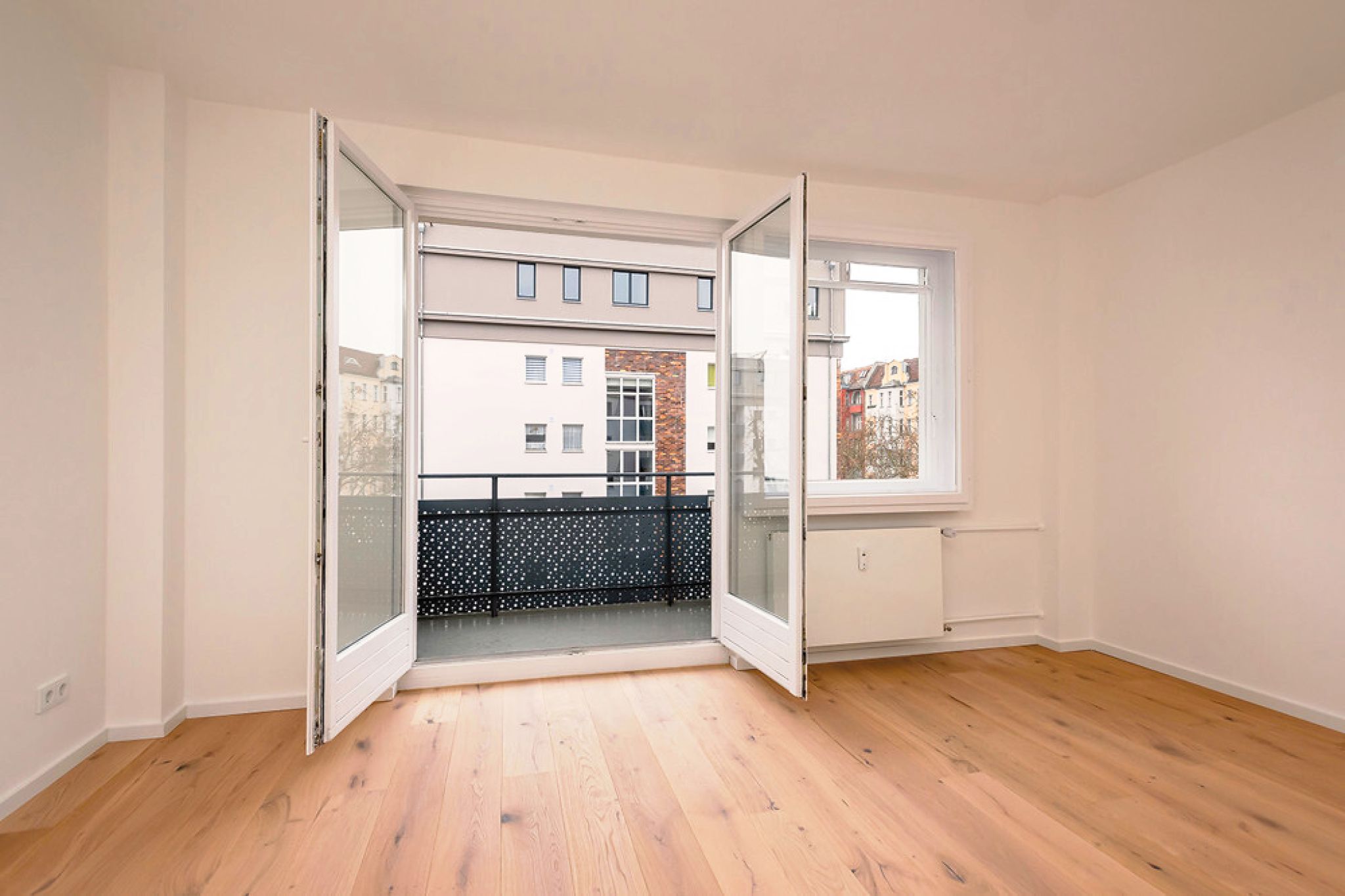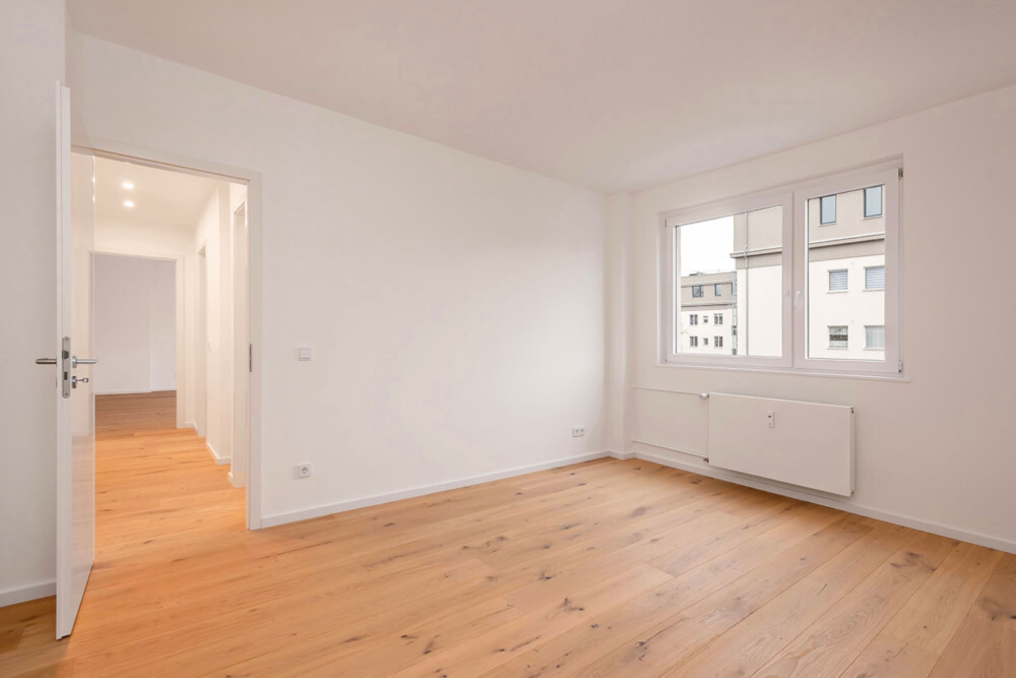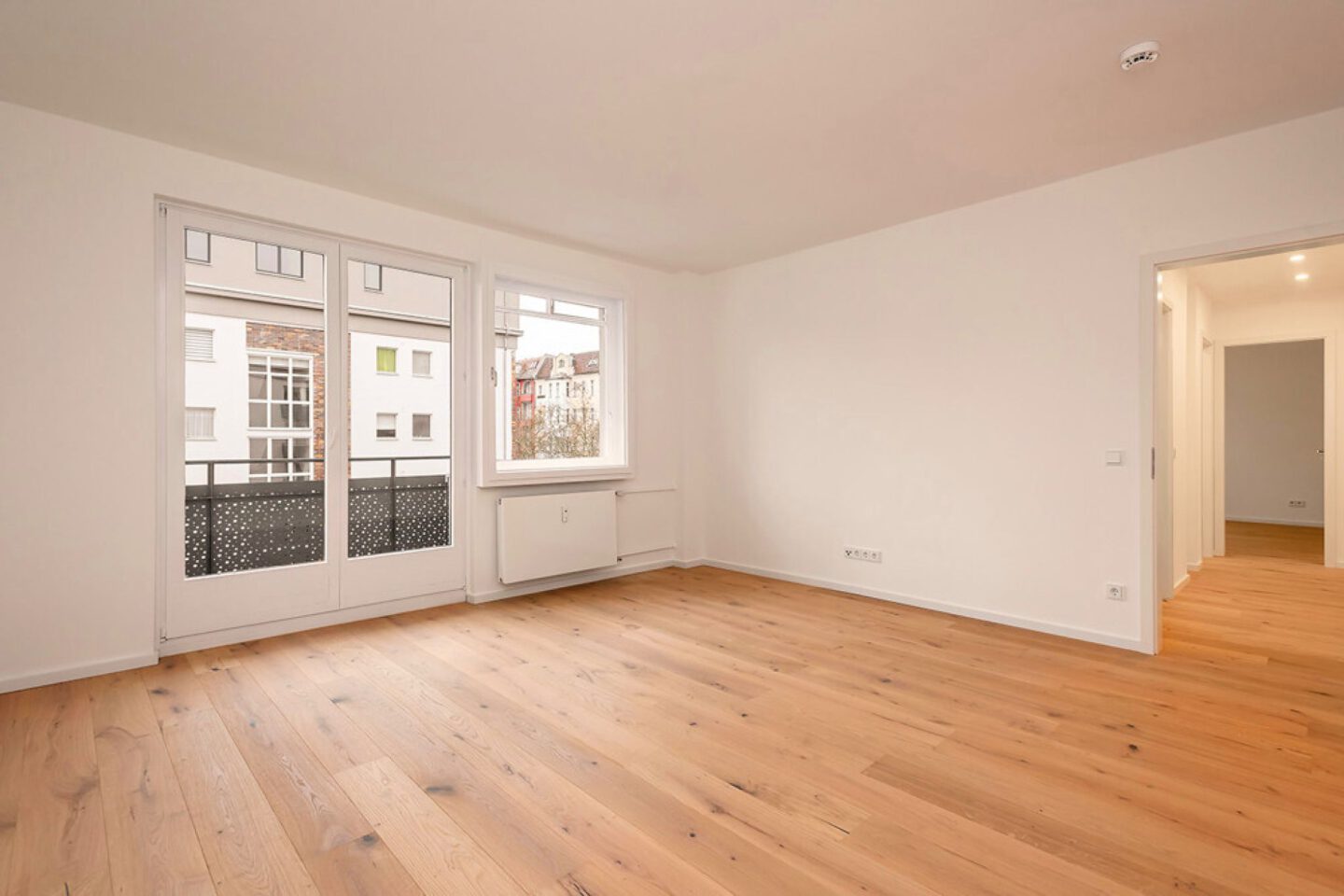 Diese attraktive Zweizimmerwohnung überzeugt mit einem durchdachten Grundriss, hochwertiger Ausstattung und einer sehr guten Belichtung. Sie wird über einen Flur erschlossen, von dem alle Räume abgehen. Eine großzügige Nische bietet Platz für einen Einbauschrank und kann so praktisch als Abstellkammer genutzt werden. Sämtliche Zimmer sind nach Süden zum Hof ausgerichtet. Das große Wohnzimmer besticht durch große Fensterflächen und den Zugang zum Balkon. Abgerundet wird das Angebot durch eine separate Küche sowie ein tagesbelichtetes Duschbad.