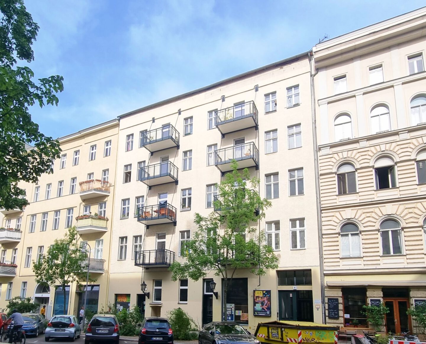 In einem klassischen Berliner Altbau (Baujahr ca. 1884) entsteht diese hochwertig ausgestattete 3-Zimmer-Dachgeschosswohnung im 5. Obergeschoss des Vorderhauses – bequem per Aufzug bis auf die Etage. Der Grundriss bietet einen großzügigen Wohnbereich, zwei Schlafzimmer, ein Bad mit Wanne, Dusche und Doppelwaschbecken, zusätzlich ein Gäste-WC sowie eine geschlossene Küche. Highlight sind die zwei Terrassen und die moderne, zukunftsfähige Haustechnik mit Lüftwärmepumpe und PV-Unterstützung auf dem Dach. Erstbezug, Fertigstellung spätestens 12/2027.