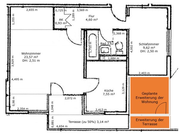 Wohnfläche ca.: 58,43 m² nach der Erweiterung