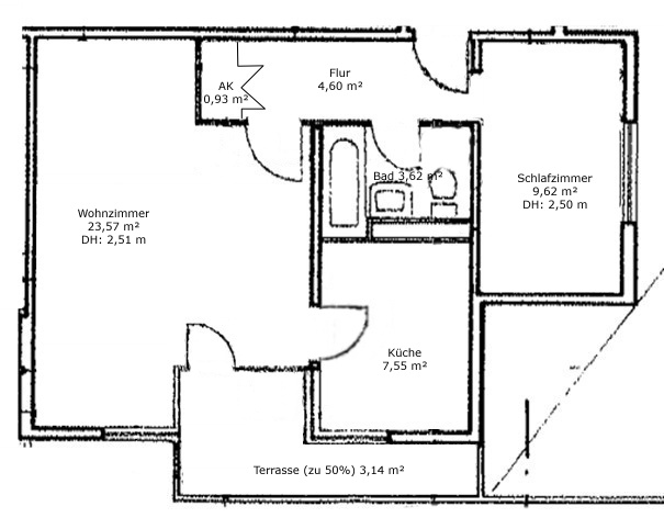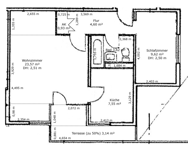 Wohnfläche ca.: 53,02 m² (gem. Aufmaß vor der Erweiterung)